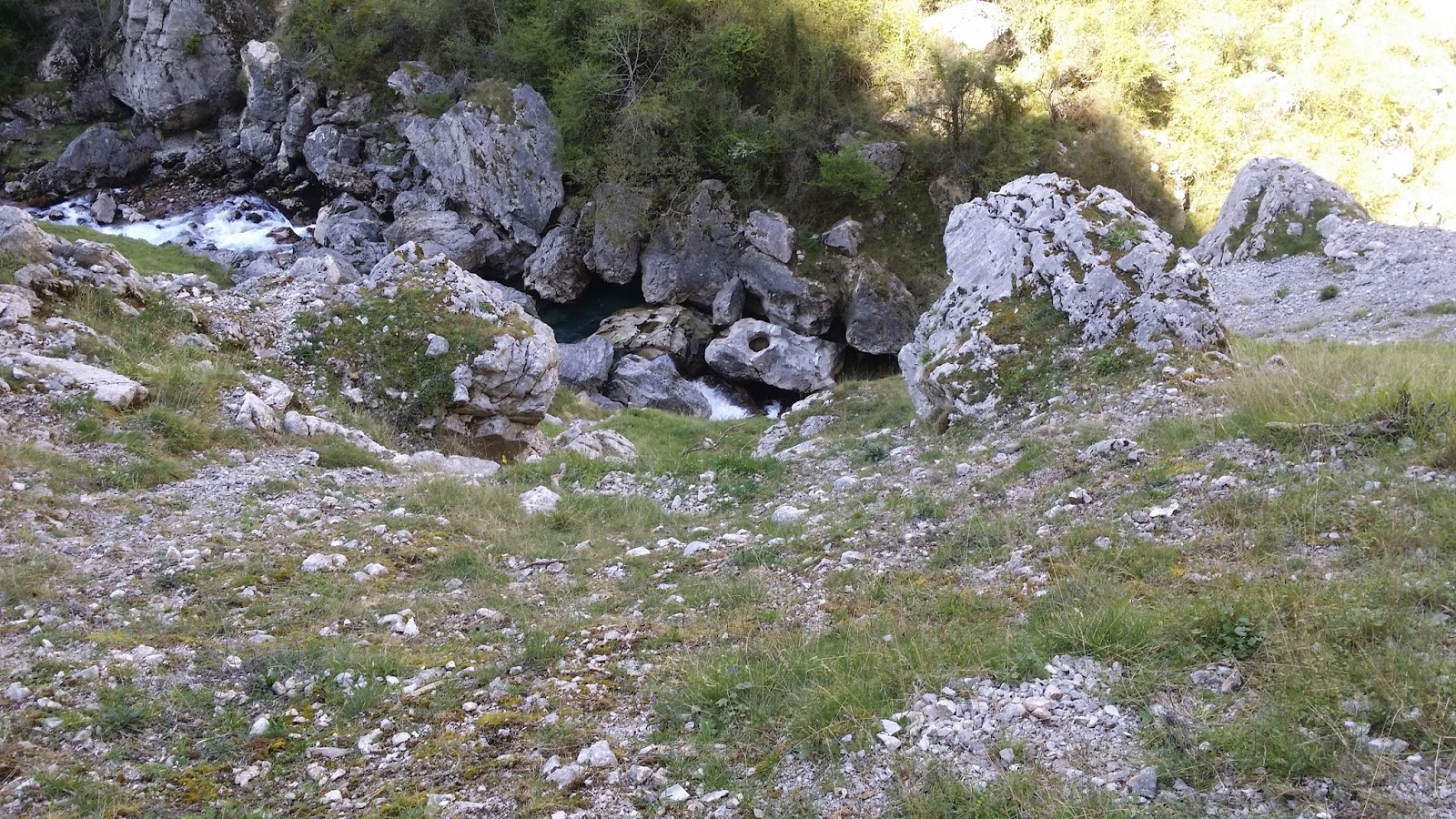 La idea era subir la canal de Estorez pasando por las reondas de Estorez, enormes rocas que se desprendieron durante una avalancha a principios de siglo pasado y que acabaron tapiando el Cares.