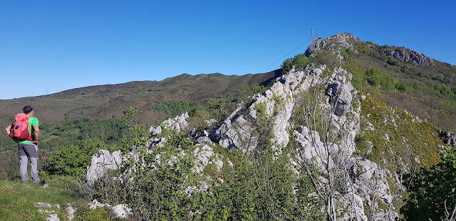Estamos encima de la collá de Arnicio, desde donde también se puede subir al Busllar fácilmente por camino normal. Tenemos en frente en dirección Norte la sierra del Frieru, que viene desde
